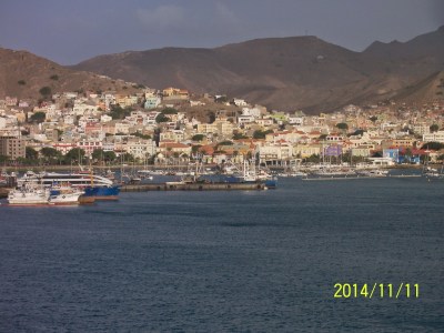 We spent a day in Cape Verde on the Island of Sao Vincente off the coast of Senegal. We docked in a town called Mindelo. It had colorful if small buildings and a lazy port. Total population of all islands is 450k.