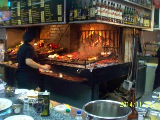 Most people ordered a platter of different meats that they all shared. We had some cheese stuffed filet and skewered beef that melted in your mouth. Yum! A bottle of superb local rose topped things off nicely. This place was as big as a small Costco store. The washrooms were way in the back, just like Costco! What a great lunch we had over a 90 minute period.