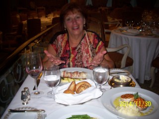 Back on board we had Polo Grill booked for a late feed of even more beef. Marie enjoyed the excellent Norwiegan salmon.