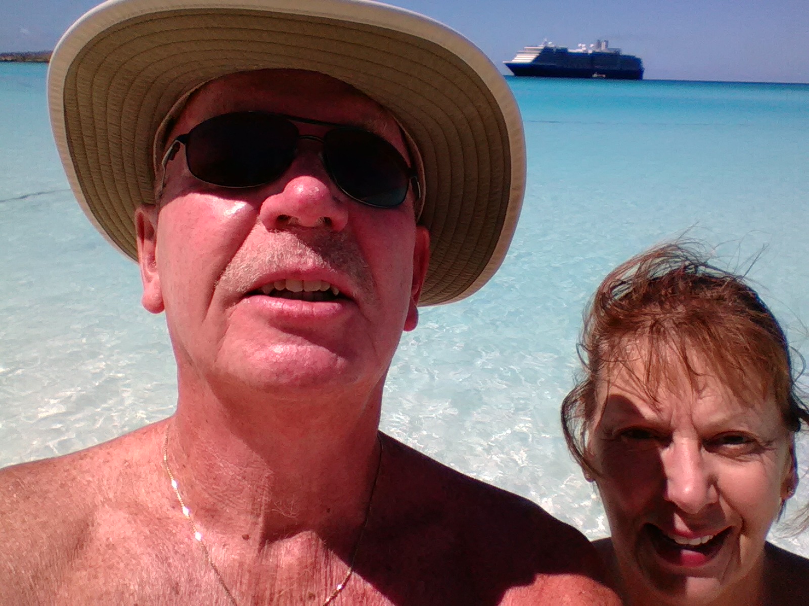 We slept well after a great dinner of salmon and roast beef, The king bed is great. Our cabin is quiet and there is very little rocking of the boat. Dave saw the sunrise over the Caribbean as we made our way to Half Moon Cay, the private island HAL bought in 1196 for $6M from the Bahamas. Dave had a dip in the Lido pool which is surprisingly fresh instead of salt water.