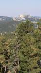 The Black Hills are a small mountain range in SW South Dakota that emerge out of the plains. The highest peak is about 7500 ft and not snow covered now. There is a thick cover of pine trees that from a distance makes the hills look black. The Lakota tribe of Plains Indians had their home hear.