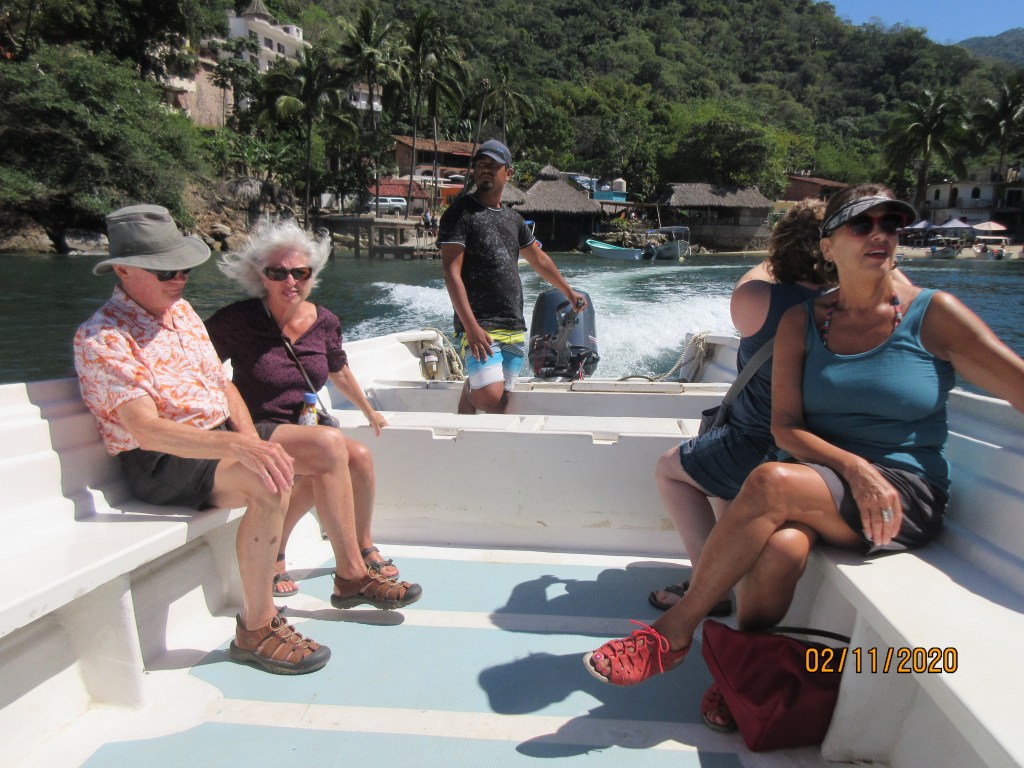 We went on a delightful outing for lunch at the Ocean Grill restaurant in Boca de Tomatlan, a sleepy little fishing village. The map above shows the routing. We took 3 buses to get there taking about 2.5 hours. You may recall last year we had an aborted outing there as they closed the restaurant due to high waves after we had taken all those buses, lol.