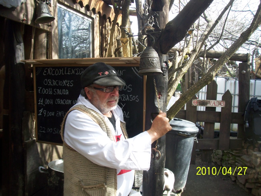 At a small hamlet called Manjarin, pop. 1, we came upon a medieval scene. A man named Tomas who claims he is the last of the Knights Templar, operates a coffee shop and animal pen turned refugio for pilgrims. We were taken aback when he rang a bell and led a small ceremony while we watched increduosly. Another living mystery on the Camino.