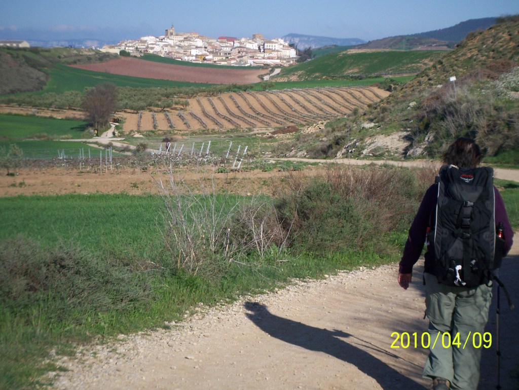 Resuming our pilgrimage adventure (only 29 more days to go lol), it was starting to warm up a bit. We hiked for awhile enjoying the fine panoramic views. We stopped in a town called Cirauqui pictured above for café con leche. Our goal today was Estella a distance of 21 km.