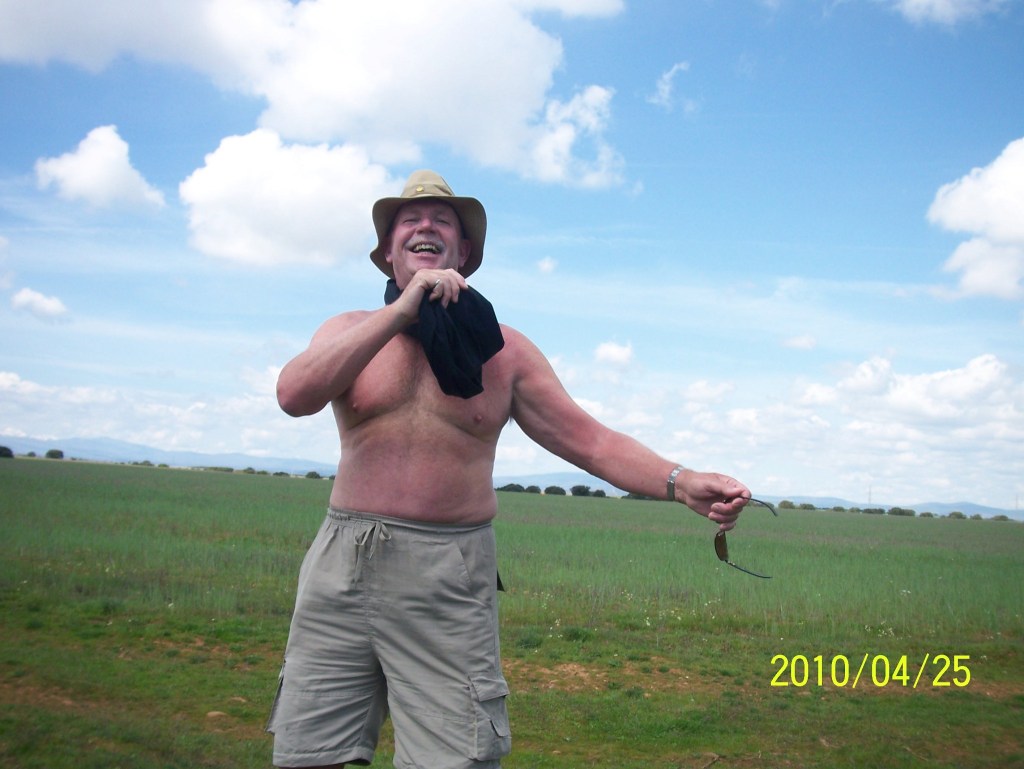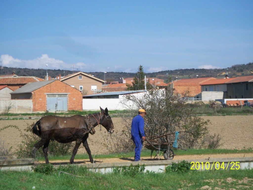 The farms here surround each town. Farmers live in town and go out to their farmland each day. They do not usually live on their land like in Canada. I suppose this is because small towns are so frequent here, it has always made sense to organize life this way since feudal times. We continued hiking in the hot sun. Suddenly we came on a nice surprise – David – the refreshment stand operator. It was a welcome relief to take a break. All he asked for was a donation.