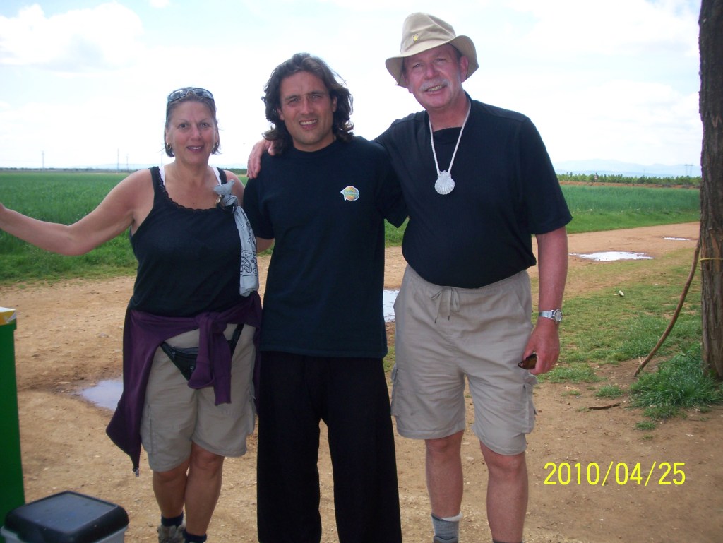 We freshened up and Sean and Ruth from Montreal checked in too. It was comfortable and he only wanted 12 Euro for the two of us. We decided to walk a few more km to have dinner in Astorga which you can see in the background above. We had heard of a famous local meal called Cocito Maragato – a Castilian stew. Well we found a great restaurant that served this dish thanks to the recommendation of a couple from Madrid we had met today. It was a huge meal! It was hard to get thru it all but Dave enjoyed the culinary experience with Marie’s help.