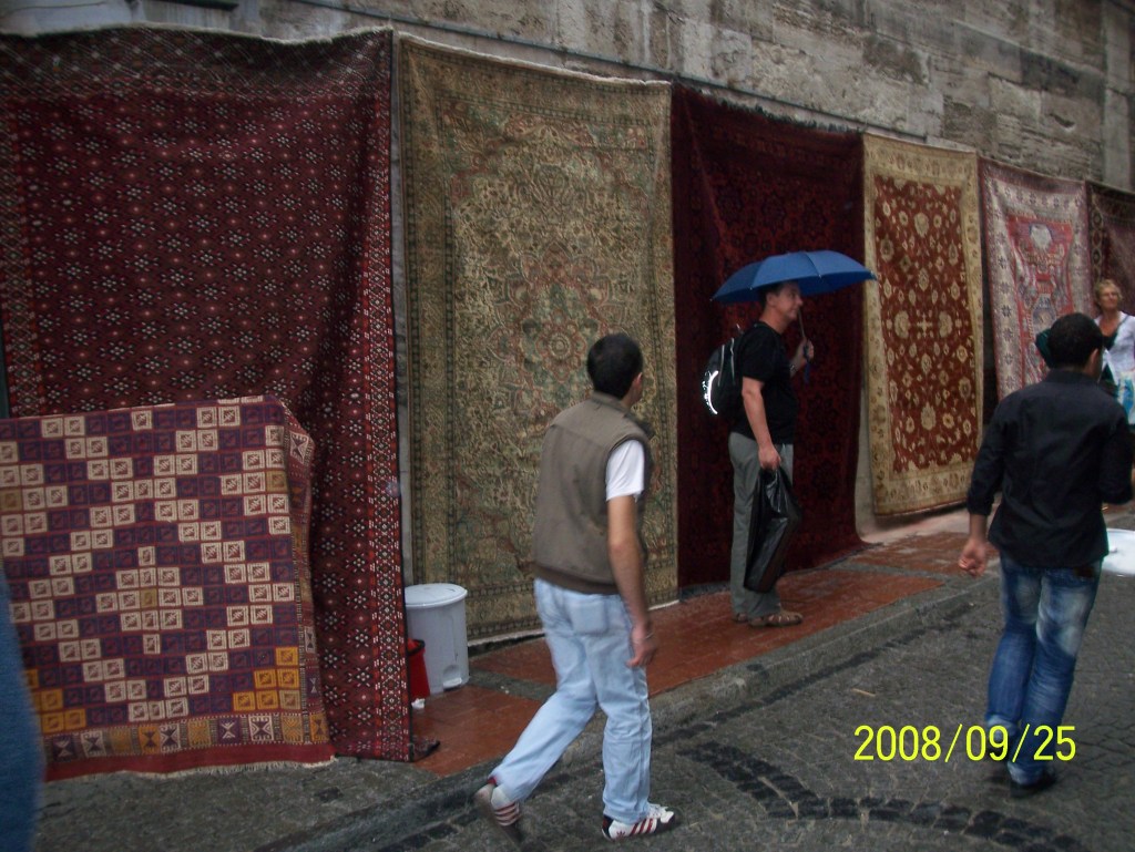 There are carpets everywhere for sale in Istanbul. These are very beautiful. We were walking down the street when a man offered us some unsolicited tourist advice. Then he asked if we wanted to buy a carpet. It would soon become a standing joke “Would you like a carpet with your fries?”