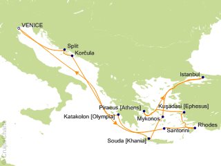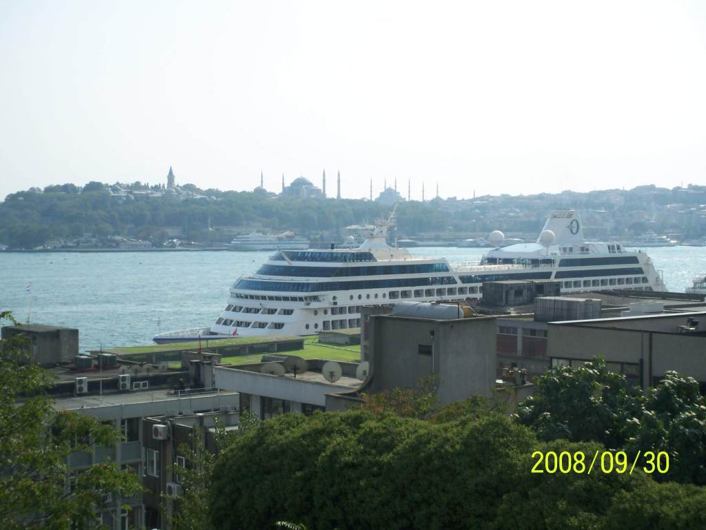 Resuming our 2008 Eastern Med group cruise, after 4 days in Istanbul we boarded our ship the lovely Oceania Nautica. It is a smaller sized vessel with 684 passengers and 400 crew capacity. We deliberately chose a smaller ship since it can get into smaller ports easier and has a higher crew to passenger ratio. Oceania bills itself as an upscale cruise line with the best food at sea. Dave had listened to some podcasts where past passengers had raved about Oceania, so we decided to give them a try. We were not to be disappointed.