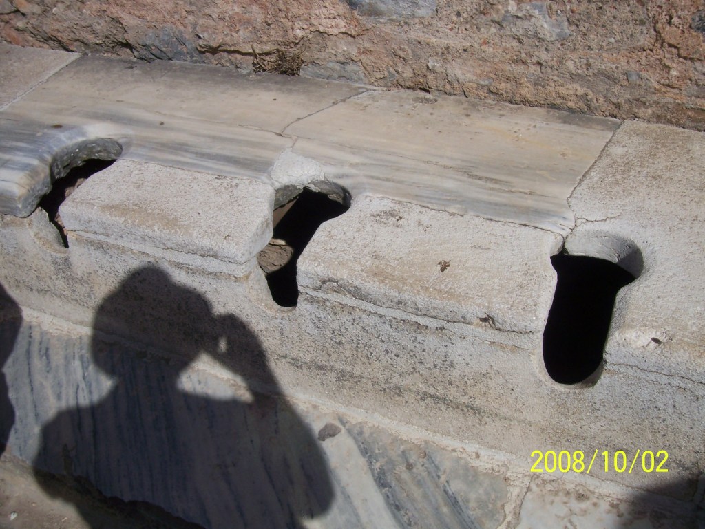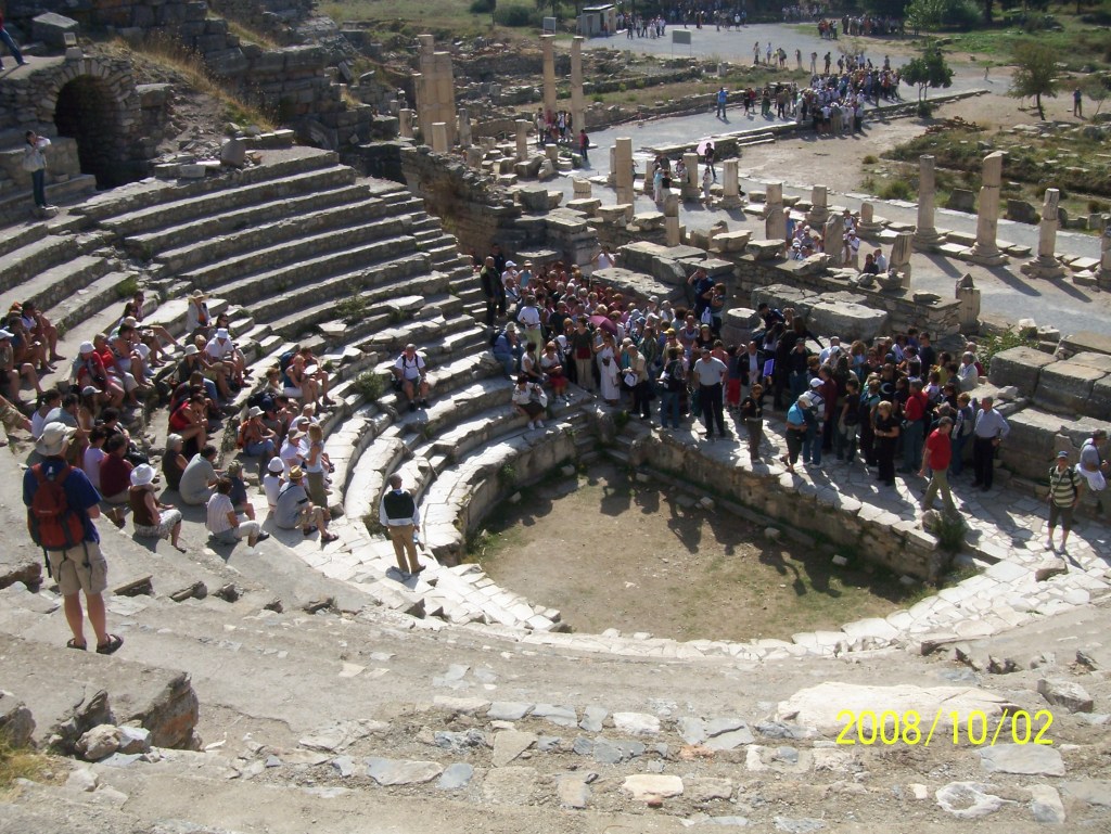 We then continued on to Ephesus which was very crowded. What an experience it was strolling down the main street of a Roman formerly Greek ancient city. There were dozens of buildings and monuments in good to excellent condition. They are constantly uncovering and restoring more. We marveled at the facade of the Library of Celsus and chuckled when our guide pointed out a tunnel running under the street to the brothel. We tried out the open air public toilets for size. We sat ourselves down in the huge open theatre and could hear the echo of Saint Paul preaching. Even though it was very busy, it was a beautiful marvelously maintained historic place to visit, to experience and to ponder about its mysteries. We will not soon forget Ephesus.