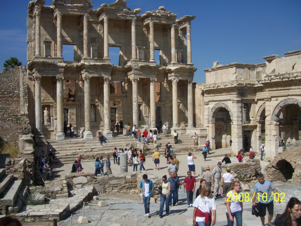 Our ship put into Kusadasi, Turkey on a perfect sunny day. We boarded a private tour bus for Ephesus, a 30 minute drive from the port. Yes Ephesus is the famous Greek city mentioned in the Bible many times in Saint Paul’s epistles. It was one of the ancient 7 churches of Asia and had come under Roman rule in 129 BC. The Christian Council of Ephesus was held there in the 5th century that confirmed the Nicene Creed and condemned Nestorius. Today it is a favorite tourist site. Its extensive antiquities are still being uncovered and lovingly restored.