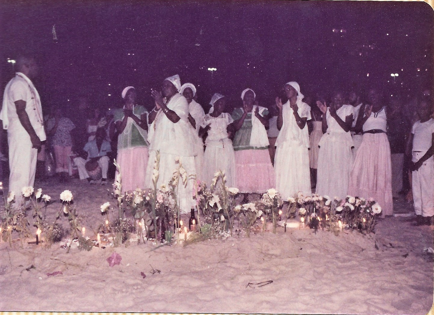 It was truly an amazing experience. We all wondered into the sea to watch the little boats float away. If they didn’t come back, that signified acceptance by Iemanja. If they did, that means bad luck for the sender I guess. I wondered into the sea, glass of wine in hand. When I wandered out I wondered what had happened to the glass, lol. At midnight a huge wall of fire poured out from the top of a hotel skyscraper and there were fireworks all about. Wow, Happy New Year 1979!