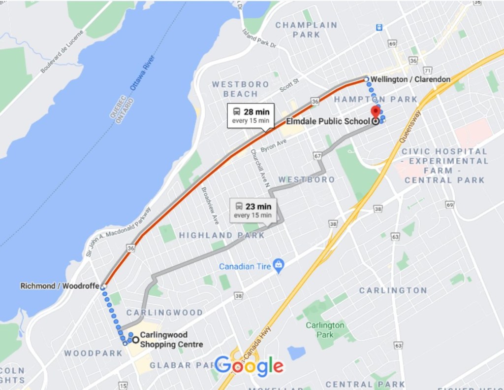 This is the 52 bus route I took every Wednesday after school. I had to go to Elmdale School for the lessons as they were not offered at D. Roy Kennedy or Woodroffe public schools. It was fun taking the bus and walking a few blocks – rain or shine. It was my first experience at solo travel.