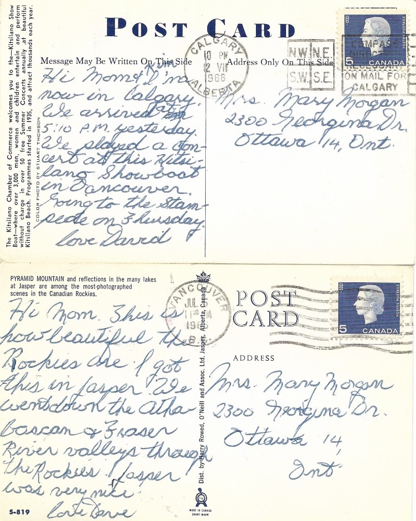 We continued on our way by train from Saskatoon to Edmonton, Peace River, New Westminster (Vancouver) BC, Banff, Calgary, Regina and back through Winnipeg. The Rockies were spectacular. I remember playing at the Kitsilano Showboat in Vancouver, a trip to the beach in White Rock, BC, going to the Calgary Stampede and climbing the Legislative Building tower in Regina to see the prairie in the distance on all four sides. We were rained out in Edmonton and had a very long 500 KM bus trip to Peace River.