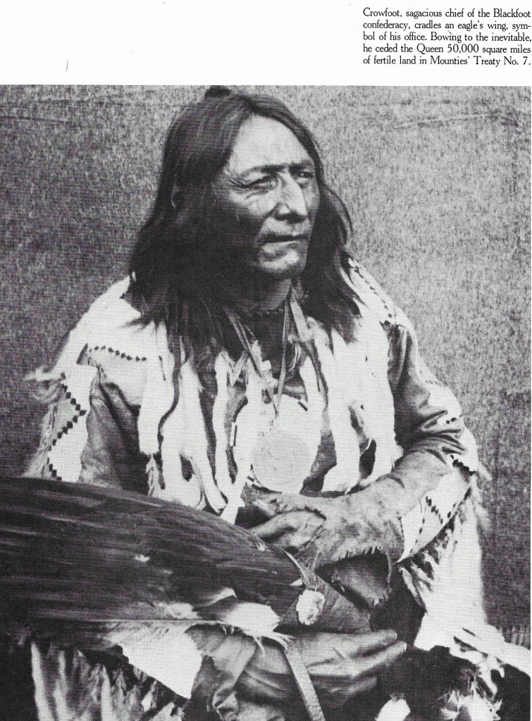 In 1865 at his request, Taché permitted him to establish an itinerant ministry to the Cree and Blackfoot. He established Saint-Paul-des-Cris on the North Saskatchewan River. From there he went on to camp with the Blackfeet who were the mortal enemies of the Cree and the fiercest of all the Plains Indians. The Cree were somewhat receptive to Pere Lacombe’s Christian teachings and some agreed to be baptized into the faith. Not so the Blackfeet. Along with their allies, the Piegan and Blood tribes, they had a culture that did not permit a warrior to humble himself. Nevertheless Pere Lacombe gained their respect and became great friends with their Chief Crowfoot.