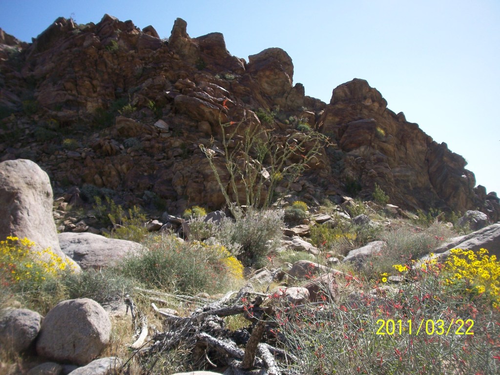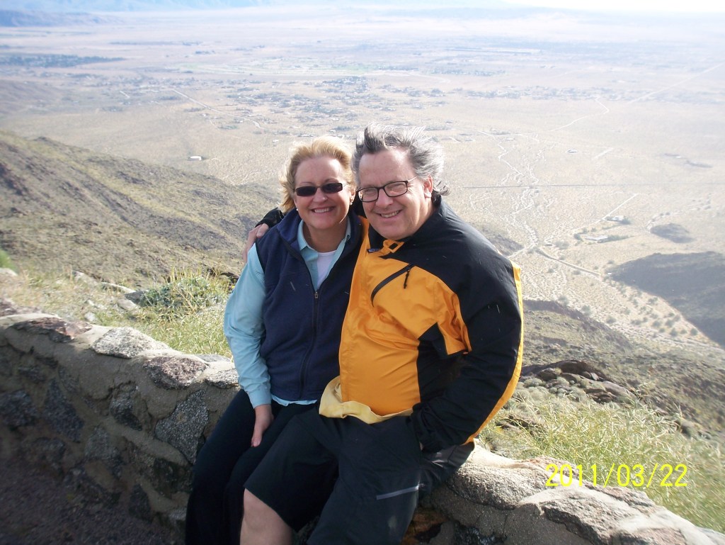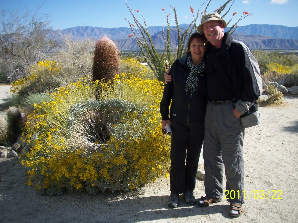 So the next day we left early together for a desert hike – this time towards Anza-Borrego Desert Park, about 90 km east of San Diego. We took some back roads noticing border patrol vehicles everywhere since we were only a few miles from Mexico. Cindy and Marvin directed us to a high ridge overlooking the desert. It truly took our breath away. The foggy mist of the coast literally evaporated above our heads as it could not penetrate into the dry air ahead. It was into the sunshine we gazed in awe at the stunning beauty of the California desert in springtime.
