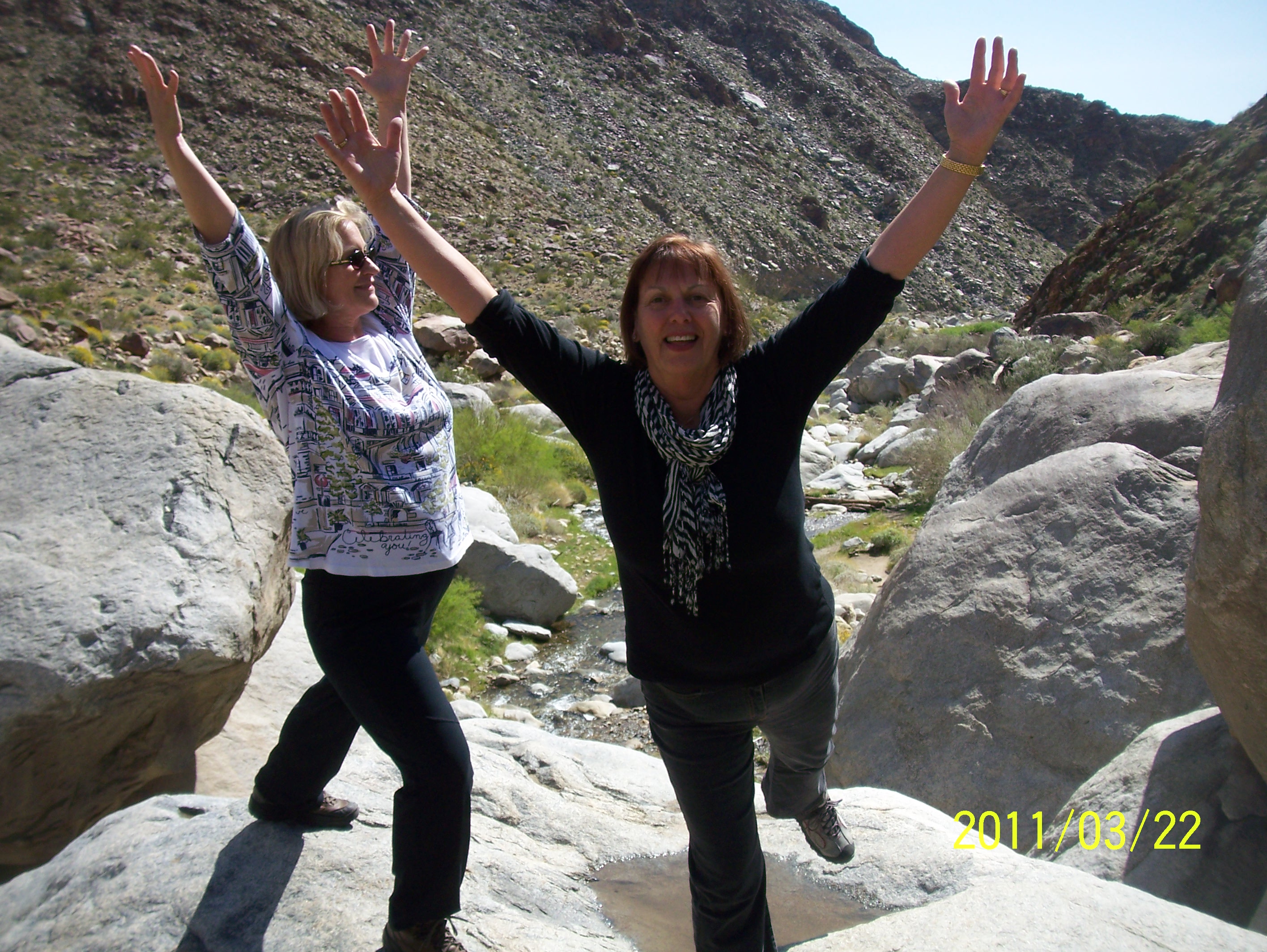 They took us on a fantastic hike up a mountain gorge as far as we could safely go. It was tricky in places – we really had to watch our footing. It was a secret place that only the locals know about. We reached a large clump of huge dried out palm trees of a kind that we had never quite seen before. Marie and Cindy did sun salutations as Marvin and I chatted in the shade. What a treasure of a day never soon to be forgotten.