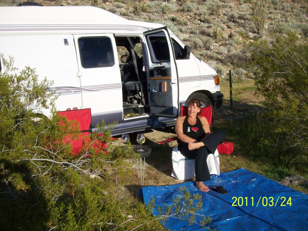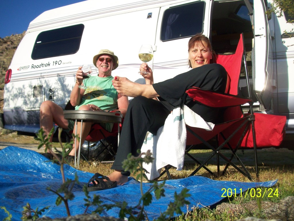 It was one of the most memorable camping experiences we had in the Trekker. Utter silence except for a light wind. Pure clean desert air, the light gradually fading. No one around us for miles – actually we could see one other boondocker about half a km away so we felt safe here. An extremely peaceful event in touch with mother earth and the natural cycles of nature.