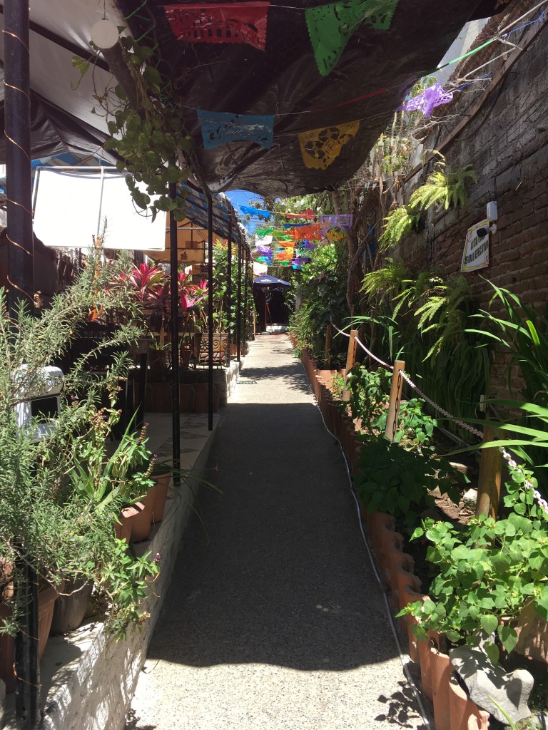 Abraham had moved from Mexico to California and for 14 years lived the life of a Californian – 2 cars, nice house, conspicuous consumption, go, go, go. He came to realize that his stress level was too high trying to hold it all together. So he returned to Mexico … and started up this very successful restaurant here.