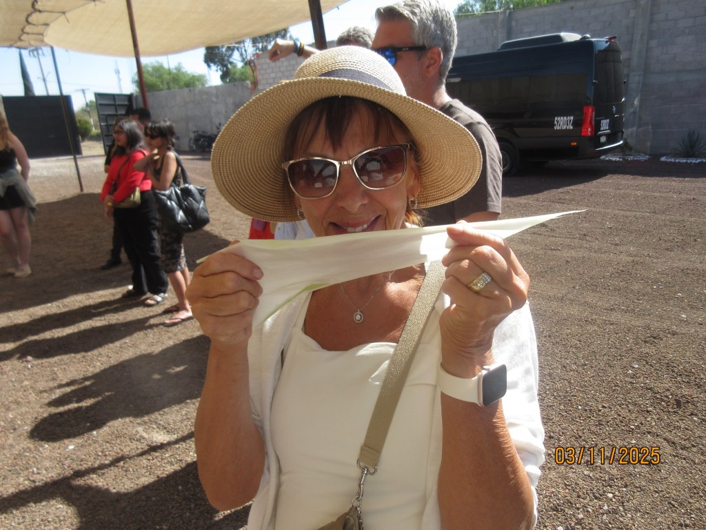 Next we stopped at an artisan workshop where they make jewelry and artifacts out of smooth volcanic glass. We learned about other types of decorative stones used locally. The many uses of the agave plant to produce food, fibre and alcoholic beverages, was demonstrated. We sampled pulque, tequila and mezcal⦠to great fun.