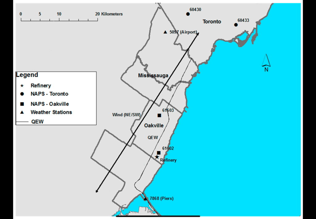 The facility is commonly called the Trafalgar Refinery or Oakville Refinery in local archives; examples and photos appear in the Oakville museum / town collections (site address listed historically as 1225 Trafalgar Road).