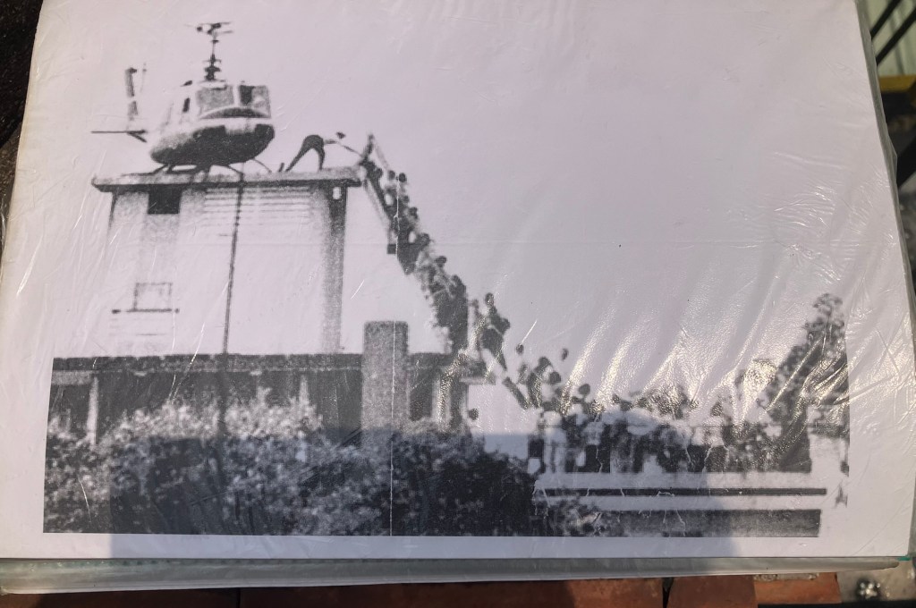 Later we visited the former CIA building where the last Americans and allies were rescued by helicopter. Our tour guide encouraged us to take this picture at the exact site.